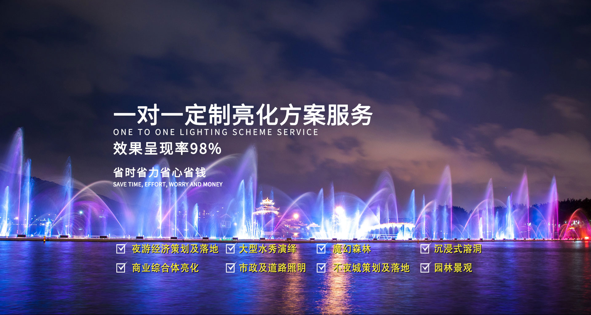 深圳市中筑景觀亮化照明科技有限公司,是一站式文旅夜游亮化工程服務商。采用國際先進的燈光技術、智能控制系統、專業照明設計、專業的工程配套施工及照明產品服務為一體的綜合性照明企業。 為城市夜景、建筑照明、市政道路、橋梁亮化、商業綜合體照明、文旅夜游規劃、景區照明、沉浸式溶洞提供國際先進的設計理念,為客戶量身定制夜游經濟配套解決方案。將文化藝術、光影設計和互動演繹于一體的綜合性視聽產品,通過運用聲、光、電、影、體、感技術打造主題夜游光影秀、光影森林、創意水秀、裸眼3D、沉浸式體驗。 中筑景觀亮化照明“追光逐影”十九年歷程,為各大城市、景區、建筑提供出色的設計方案。同時注重科技自主創新,產品款式創新、技術創新、方案創新、為客戶創造更大價值與客戶互利共贏,共同發展,成就未來。